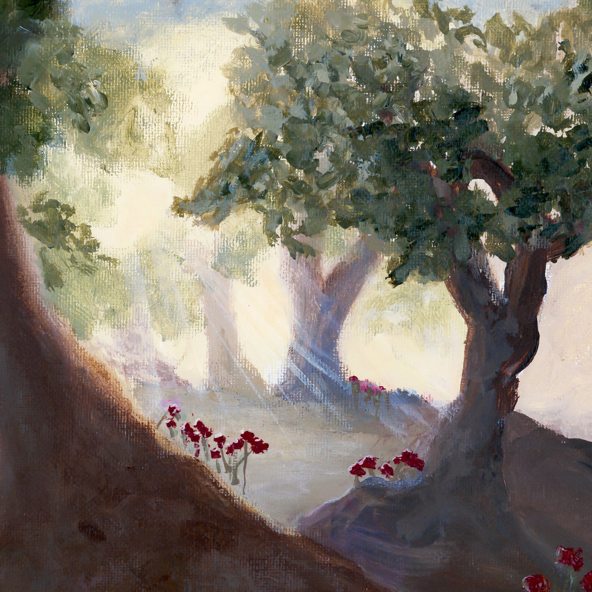 Introducing 'Gethsemane Sunrise' - a beautiful portrait of the Garden of Gethsemane that embodies his love, sacrifice, and light. Red poppies bloom in the spring giving us a powerful visual reminder of the sacrifice shed there and the beauty that has come from His divine intercession for us. This print is available at The Light Gallery and is the perfect addition to any space. With calming hues of neutral colors, it complements all types of home decor and infuses a brightness of hope and kindness into any room.